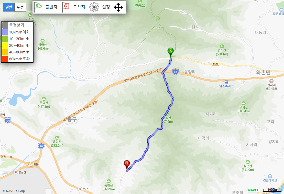 감투봉 정상 전망에서 119.2km